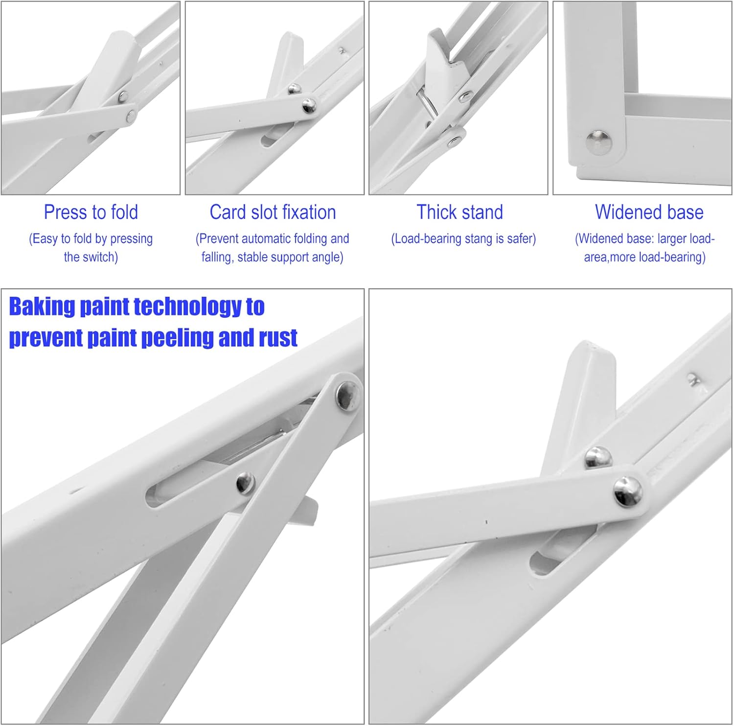 - SUPERIOR LOAD CAPACITY: Engineered from thickened, high-quality steel with a reinforced triangular structure for maximum stability. These collapsible hinges offer a strong bearing capacity, safely supporting heavy tools, laundry items, or even a full wall-mounted dining table. Reliable and safe support you can count on.