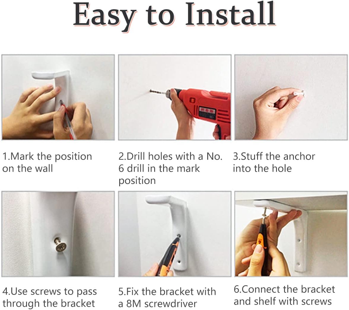 - EASY & SECURE INSTALLATION KIT INCLUDED: Skip the trips to the hardware store! Your purchase includes all necessary mounting hardware (screws and wall anchors) along with a simple 6-step diagram for a quick and secure DIY setup on drywall, brick, or wood studs, ensuring maximum stability.
